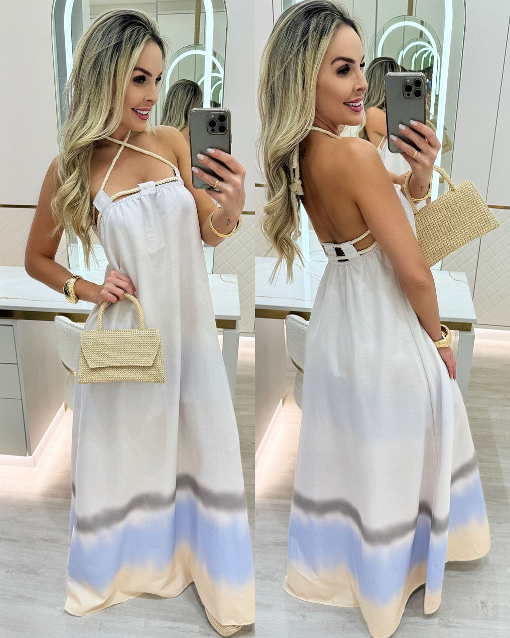 Medidas tamanho Único: Busto 74cm, cintura 121cm, quadril 130 cm e comprimento 131 cm.